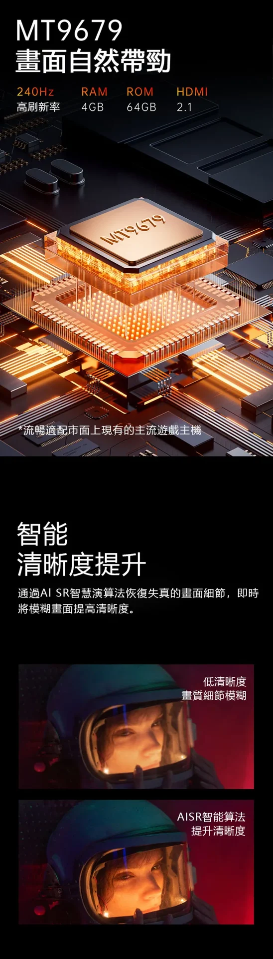 機身連接 ::HDMI2.1 X2, USB,AUX