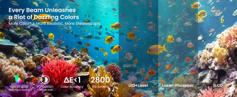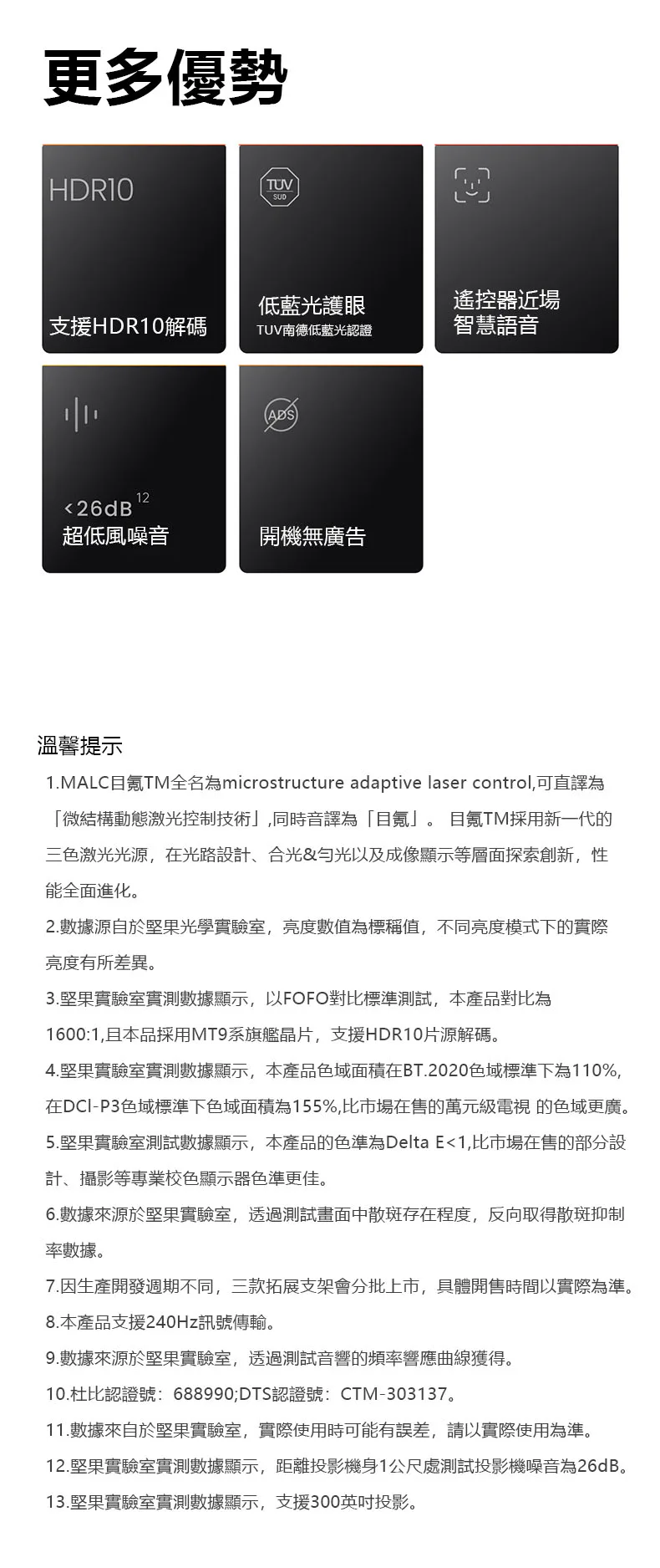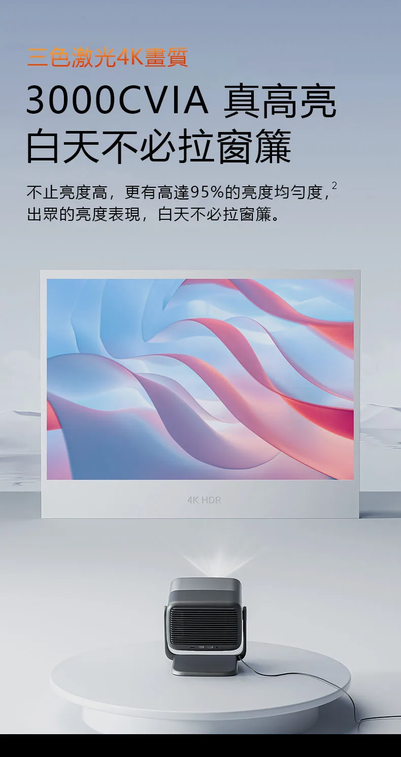 4K 激光高清 |110% BT。 2020 |△E<1 色彩準確度 | HDR10 | 1600:1 對比度