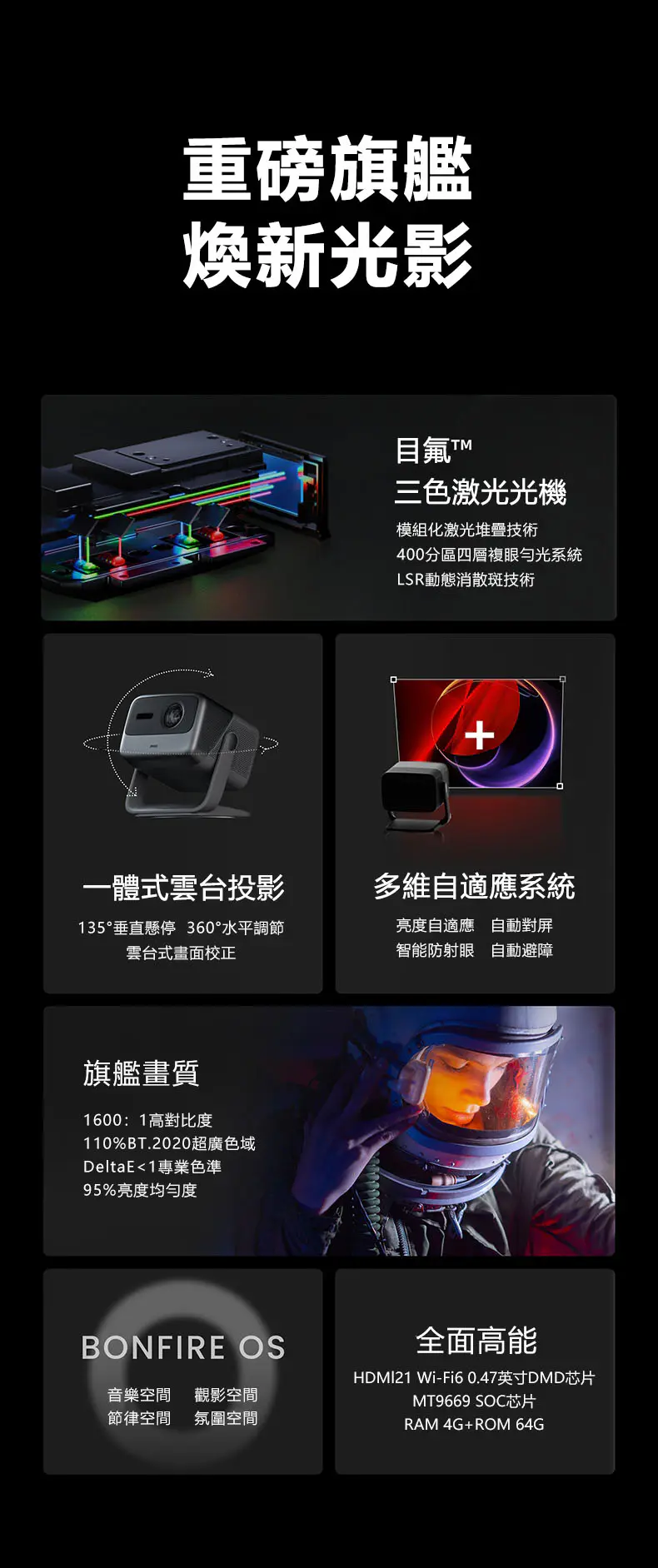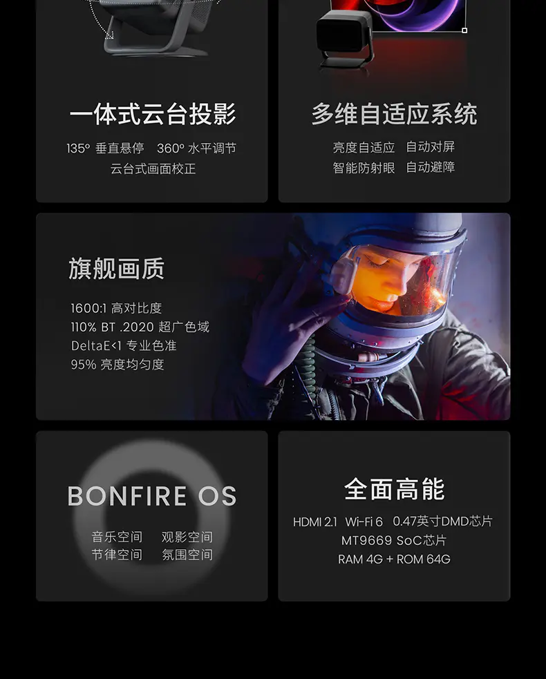堅果JMGO N1 Pro三色激光雲台投影儀 家用超高清臥室智能投影機 支持多國語言(國際版)