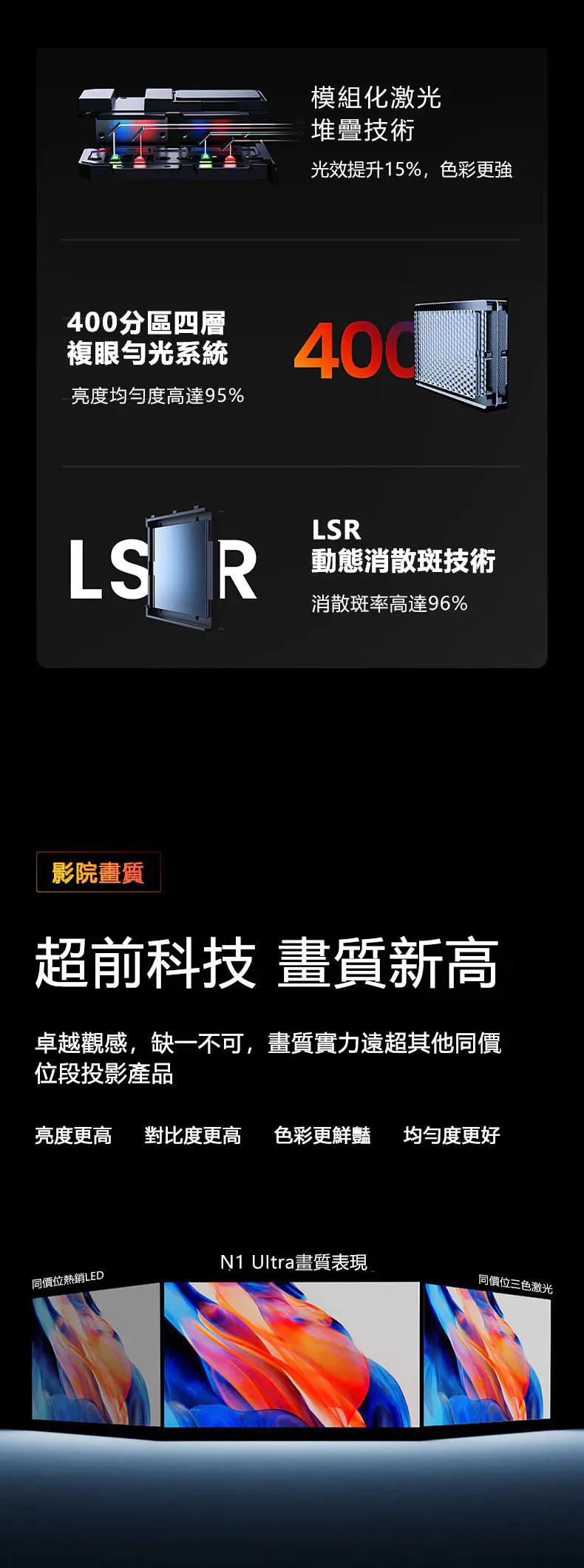 堅果JMGO N1 Ultra三色激光投影機家用 4K超高清智能投影機 支持多國語言(國際版) 香港行貨 兩年保養